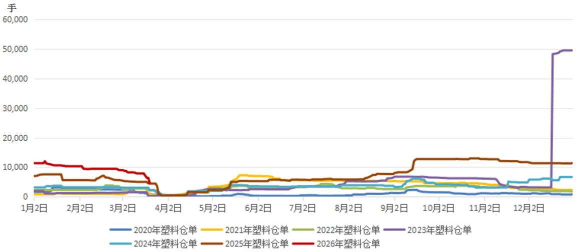 图为2020—2026年大商所塑料仓单数量